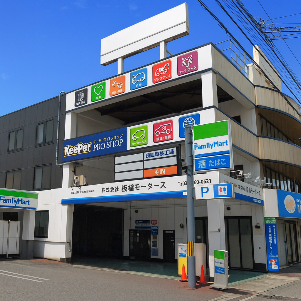 Itabashi Motors Co., Ltd. is an automotive service workshop located at 3-31-3 Maenocho, Itabashi-ku, Tokyo. It is situated along Kanpachi Avenue, near the Maenocho 3-chome intersection, right next to a FamilyMart convenience store.